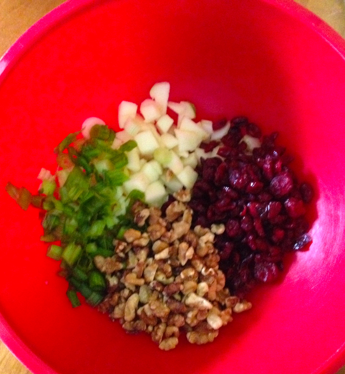 Some ingredients for wheatberry salad - looks sort of like Thanksgiving in a bowl!Some ingredients for my wheatberry salad – looks sort of like Thanksgiving in a bowl!