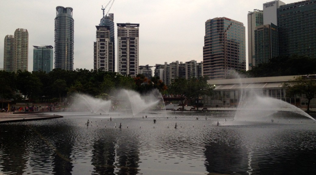Yesterday afternoon along with two friends, Mitch and I took the train from Seremban to KL Sentral, the main train station in Kuala Lumpur. From there we transferred to the subway and headed to KL City Centre (KLCC), the main shopping and entertainment district of KL. We wandered around the massive mall, visited a few stores, tried and failed to get tickets to the Malaysian Philharmonic Orchestra (MPO) because none of us knew there was a pretty strict dress code, wandered through a lovely park, and had an excellent meal with our Scottish friends in an Irish bar. Some highlights are below. Enjoy!