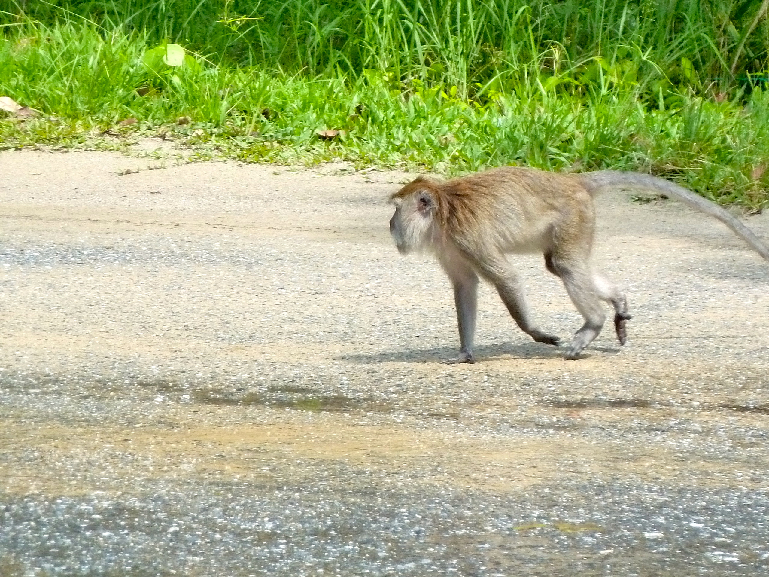 In sharp contrast to Seremban, Langkawi has wildlife! It also has cats and dogs everywhere, but so do we. We passed multiple groups of crab-eating macaques searching for food, picking bugs off each other, and, in the case of this one, pursuing mates.