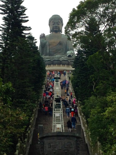 Our first destination was the Po Lin Monastery, located on the island of Lantau. It’s a bit of a trek to get there from where we were staying on Kowloon. Taking public transit took just under 2 hours. It would have been quicker had we been able to take the cable car upon arriving on the island, but it was under repair so we took a bus up windy, twisty roads. That is always a potential recipe for disaster, but we pulled through. Monasteries seem to always be built in beautiful places, and it’s no surprise why. Look around and there’s some sort of breathtaking moment or view or setting that causes one to think of higher powers that could have created such an image.