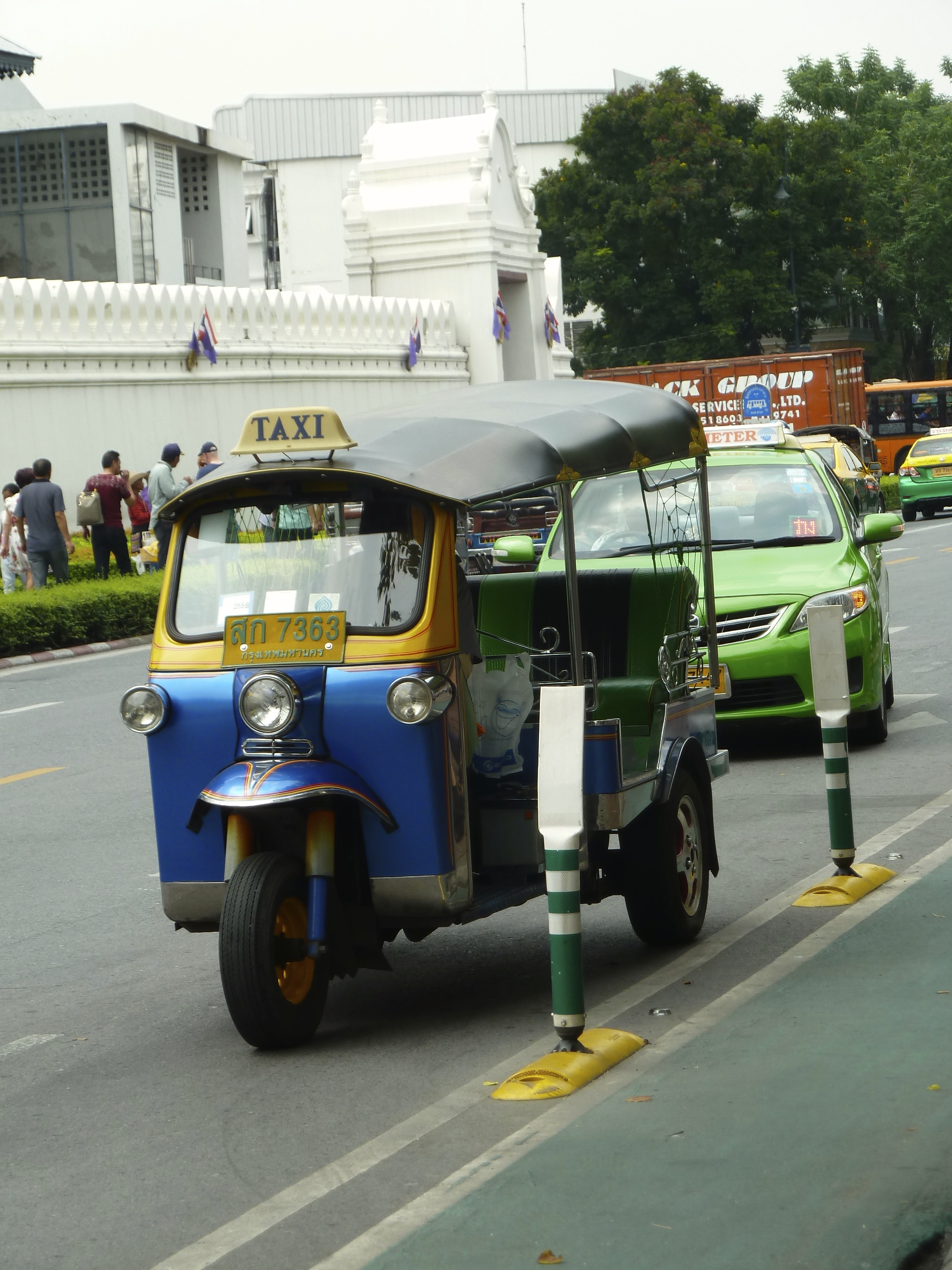 After a delicious lunch of pad thai, green curry, and Thai iced tea, my Thai favorites, we crossed the street to visit the Grand Palace. Mitch and I were in Bangkok a year ago, as I mentioned, but it was fun to go back and see it all through my dad’s eyes this time. Now that I’m used to certain aspects of life in Asia, and certainly now that I’m used to traveling in Asia, I’ve somewhat lost track of what used to make me uncomfortable or strike me as new or different. I revisited all of that during my weekend in Bangkok with my father.