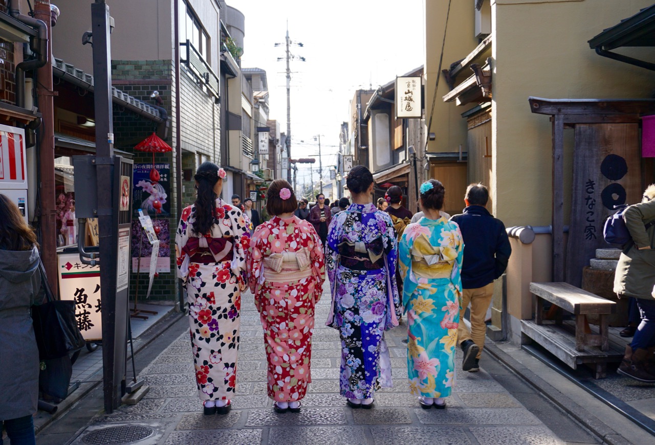 April is cherry blossom season in Japan and it’s as beautiful as everyone says. April is also early spring, which means the weather is highly variable. Umbrellas and layers were key to feeling comfortable wandering around Kyoto, Japan’s Imperial capital beginning in the 8th century. It remained the seat of power in Japan for over a thousand years and historic monuments, shrines, and temples abound. Renting a kimono for the day is a common activity in Kyoto and it was fun to see people dressed up – almost like going back in time!