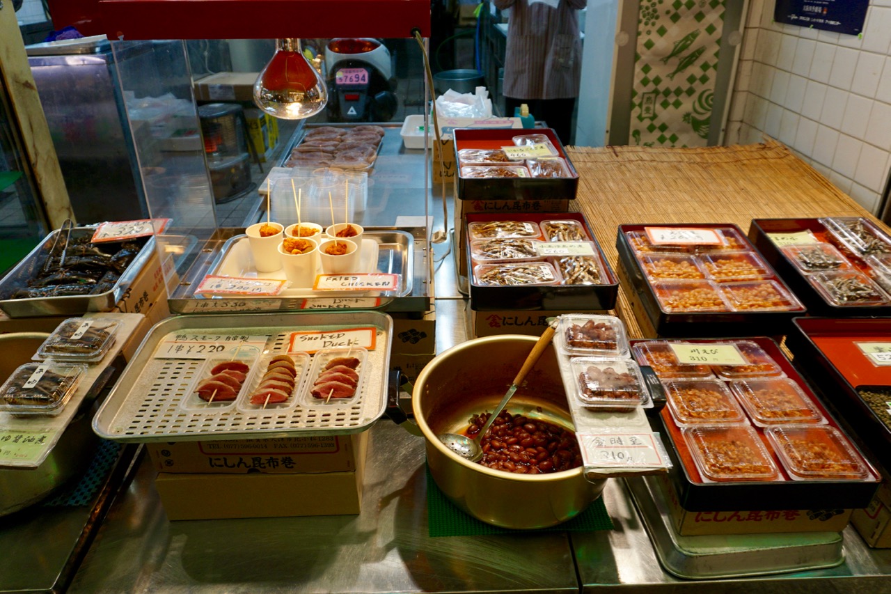 From there, we went to Nishiki Market, a covered arcade of streets selling all sorts of food products, clothing, and souvenirs. I was mostly interested in the food stalls and we returned a couple days later to explore further. It was so enjoyable to smell new smells, taste new tastes, and just look around. Markets are always a travel highlight for me because they bring so much life there in so many different forms.