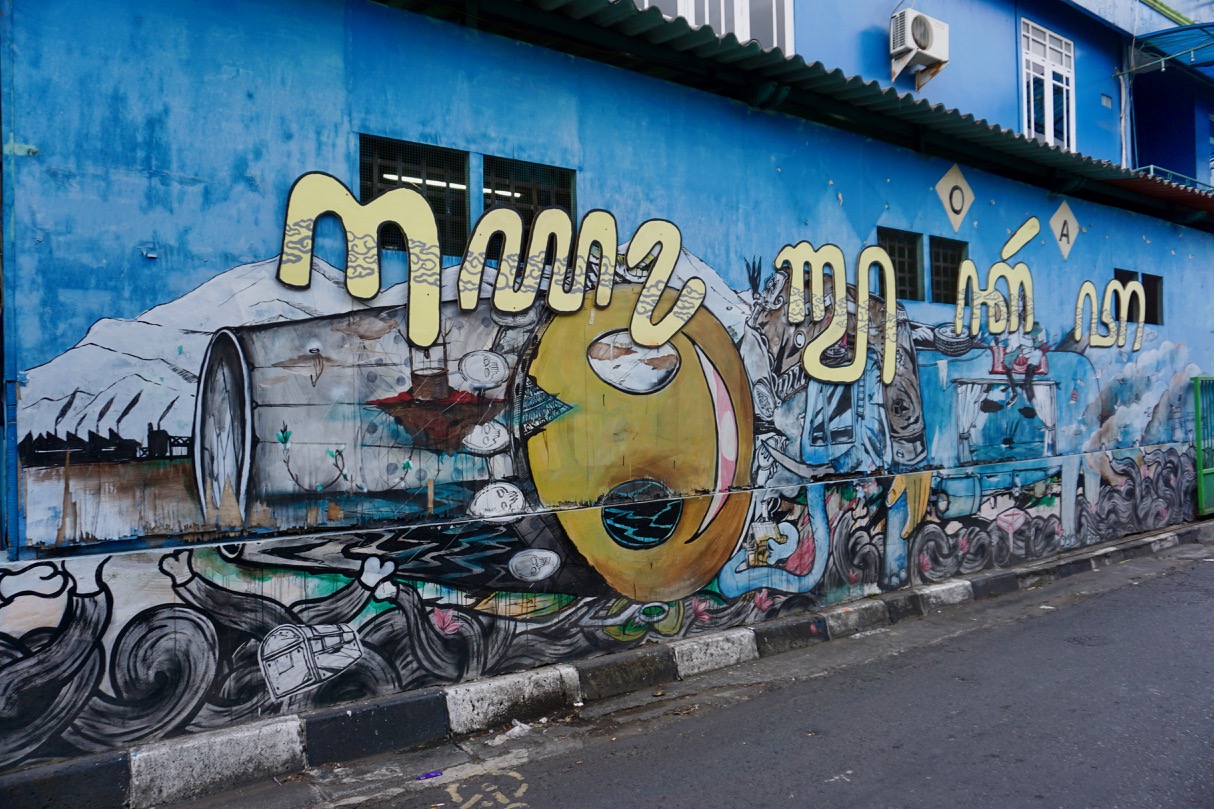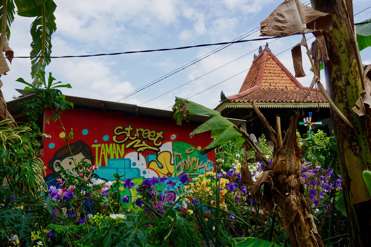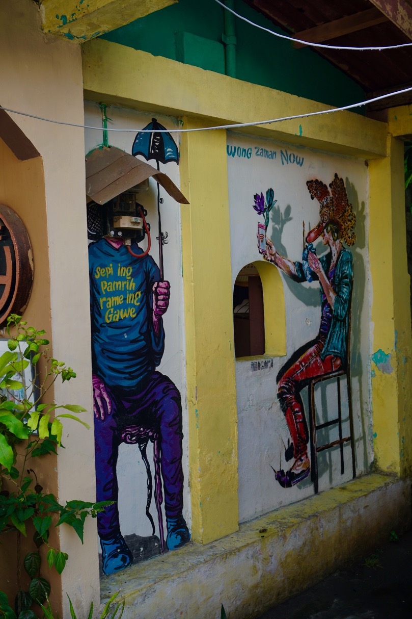 We arrived early in the afternoon and started off with a walk to get our bearings. Jogja is bright, sunny, and hot and we were happy to take the suggestions of a few locals who stopped us to chat. They sent us to a couple batik art galleries and told us about cultural events taking place over the weekend. As we walked, we saw quite a few murals, which is always a highlight for me.