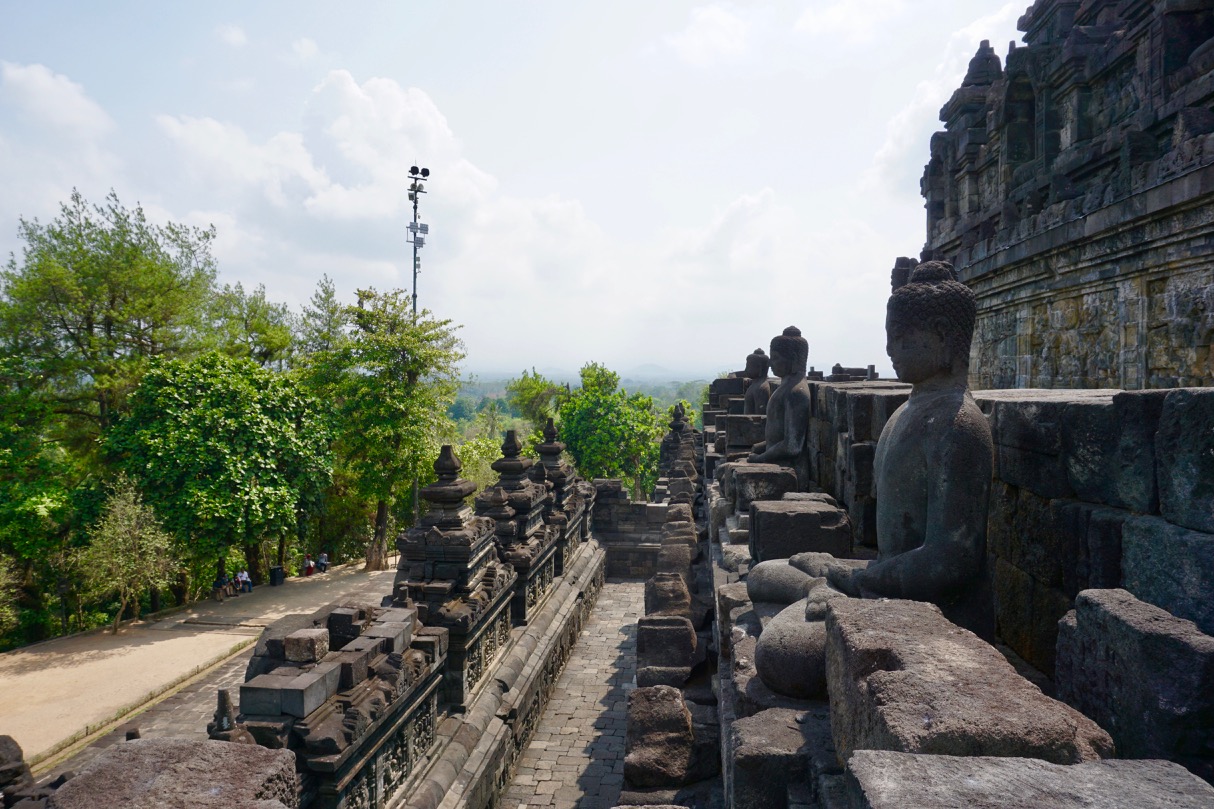 The primary reason for our visit to Jogja was to see Borobudur and Prambanan, two very famous temples. We went on a Friday to avoid weekend crowds and that actually worked out really well. Borobudur dates back to the ninth century and is now a UNESCO World Heritage site. It’s the largest Buddhist temple in the world and designed so that visitors follow the path of Buddhism from the base of the temple, symbolising the world of desire, up to the top of the temple, symbolising the Buddhist cosmology of forms and then of formlessness.