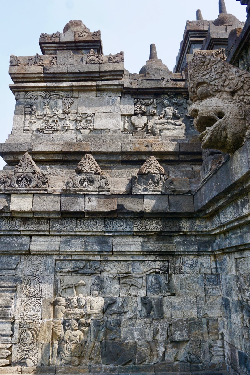 Borobudur is about an hour and a half away from Jogja and our driver pointed out interesting spots along the way, told us about Indonesian farming, and answered our questions about life in Jogja and the rest of Indonesia. On our way back to the car my friend commented that it’s interesting how the best-known part of Borobudur, the stupas at the top, are hidden until you get there. I mused that this fit into the design of the temple – you have to do the hard work on the individual self before reaching that point of clarity.