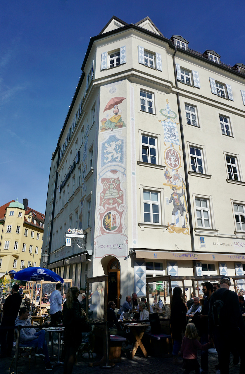 The day began in earnest with a walking tour in which we learned about the history of Munich and Bavaria and talked about beer culture. The tour guide, Jax, explained that the façades of Munich’s buildings were redone after the war, often in very clever ways. The buildings themselves are therefore not old, considering about 50% of the city was damaged during the war, but their careful consideration of the past has lent the old town an old feel.