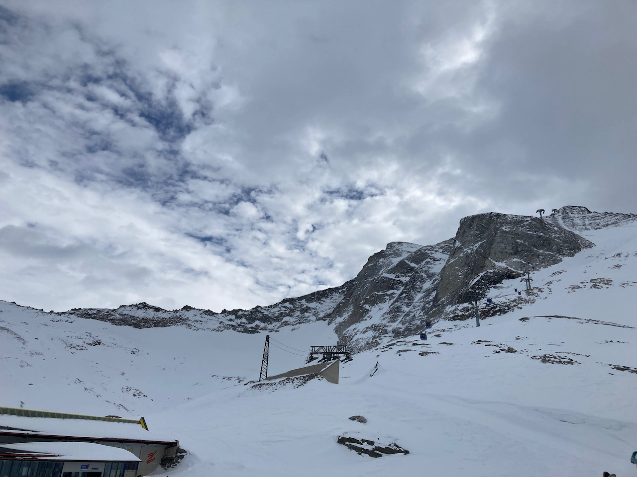 And it really was beautiful, in all kinds of weather, the entire time. We skied fast groomers in bright sunshine; found patches of powder in a snowstorm and worked our legs hard in the moguls that remained the next day; felt ourselves tiny and insignificant in the howling wind that rose through the glacier where we spent our last day. My breath caught with nowhere to go and there was nothing to do but fly, nothing to do but trust the skis in the wind even as the snow swirled up from everywhere and rendered visibility impossible. And then there was nowhere to go but back up the glacier in the hopes that our trial by wind had been recognized.