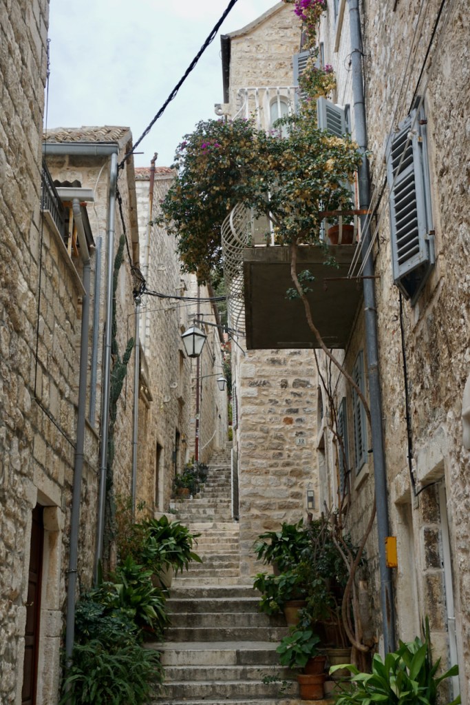 For our last day in Dalmatia, we took a ferry an hour away to the island of Hvar. We walked up to the fortress overlooking the Adriatic and the town below and then along the harbour in the opposite direction, following paths that twisted and turned around trees and white stone.