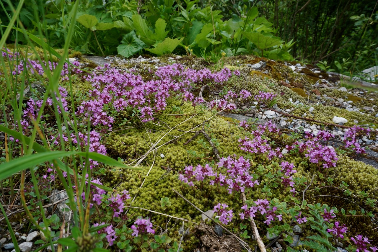 After a round of steep snow fields, the landscape began to change yet again and alpine flowers appeared.
