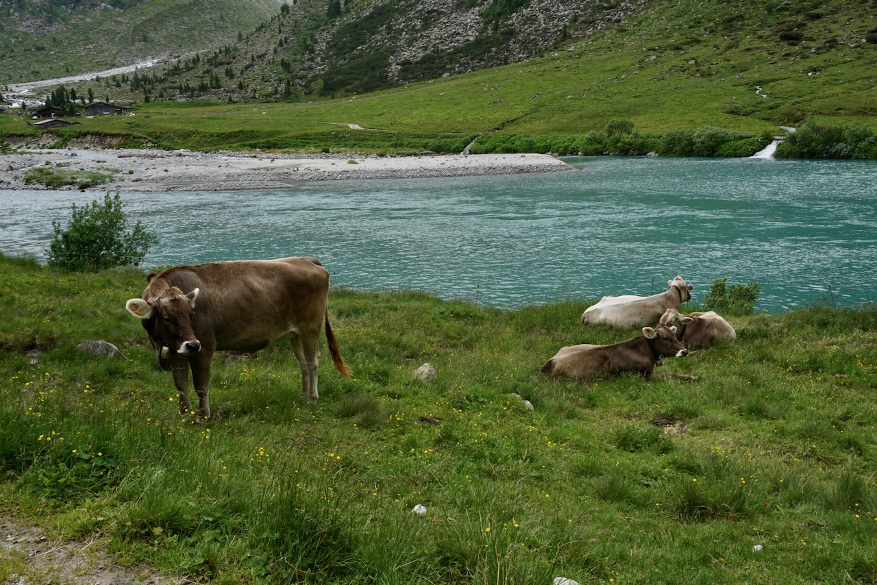 As when we first began, we passed grazing cattle as we made our way down to the Schlegeis Reservoir.