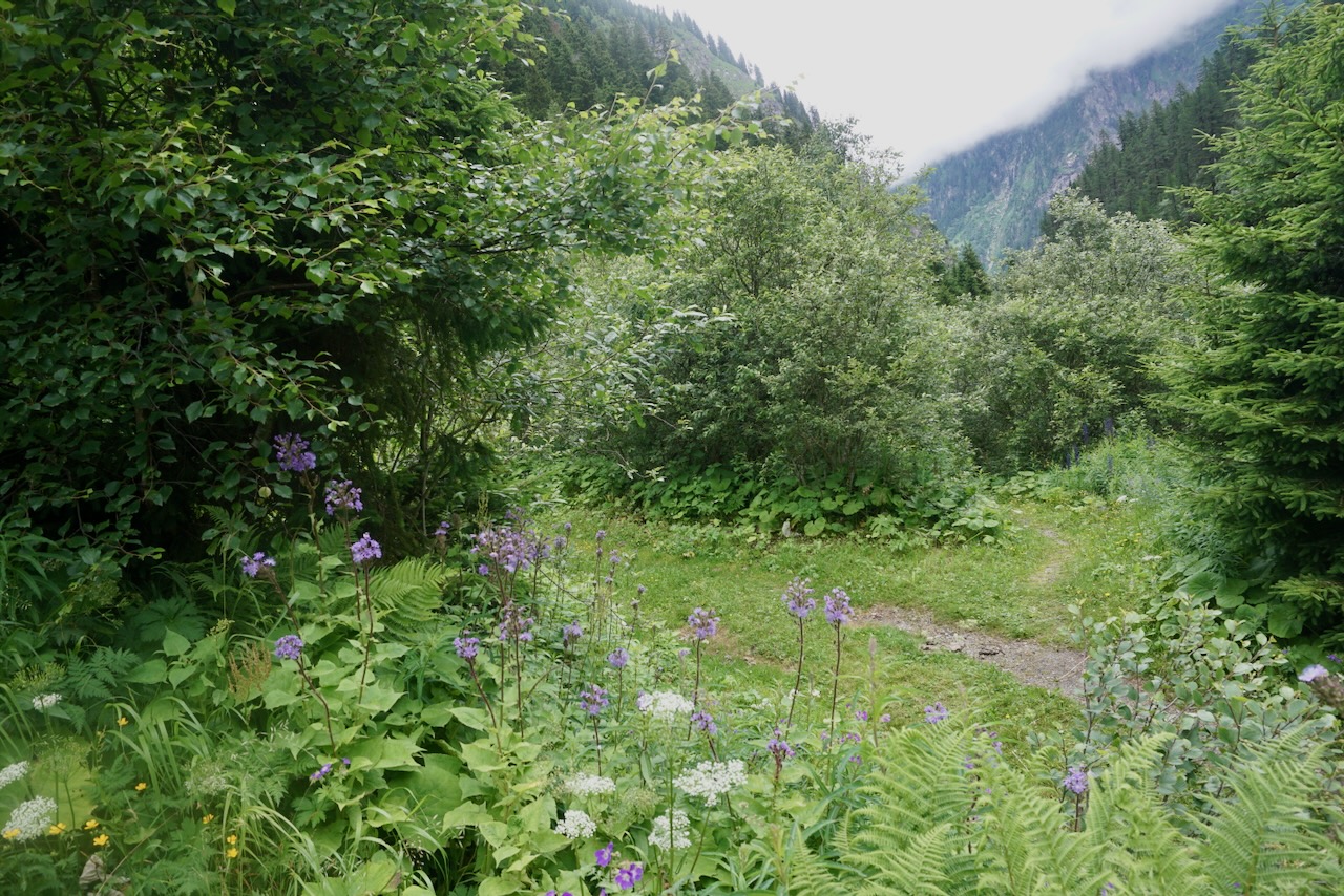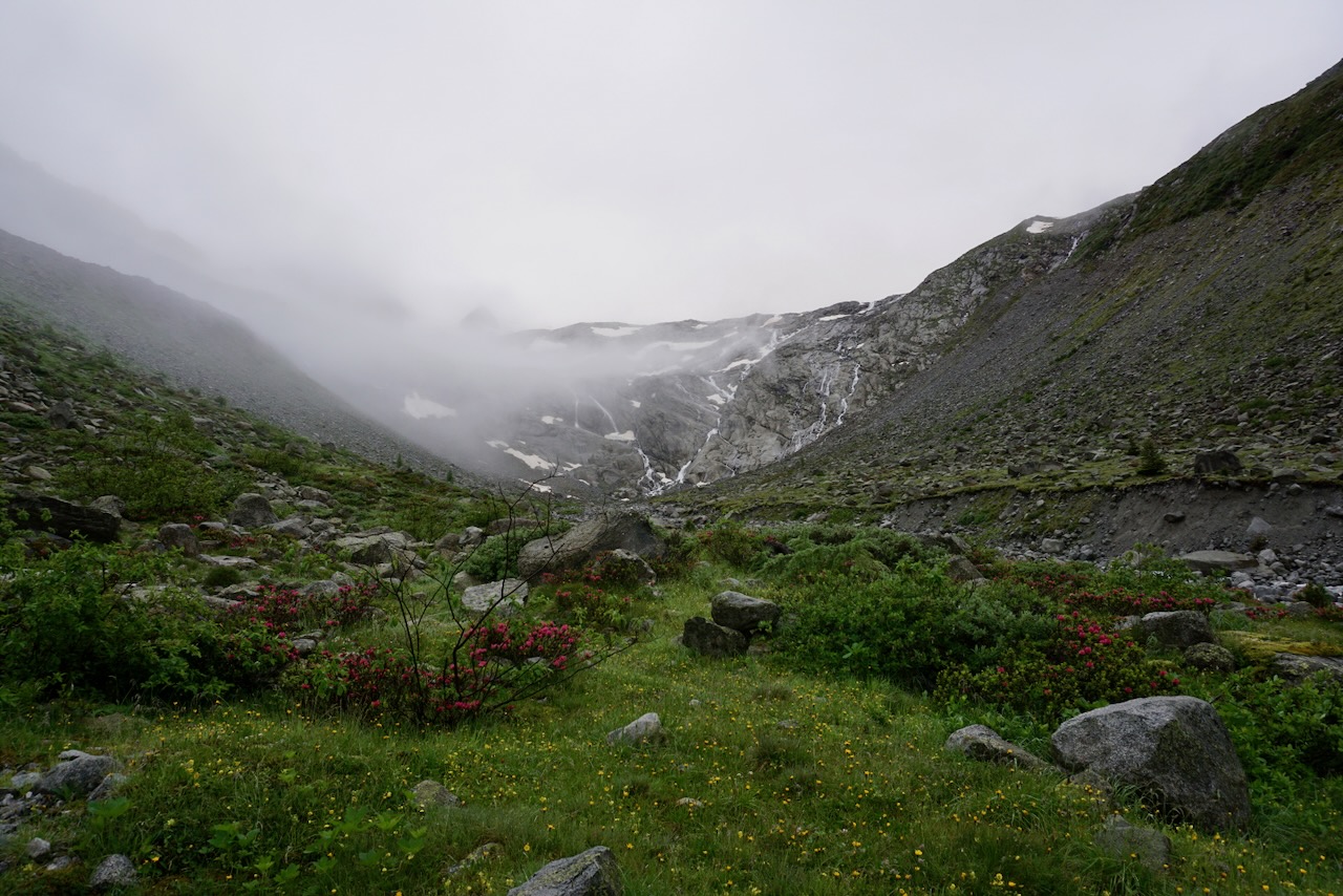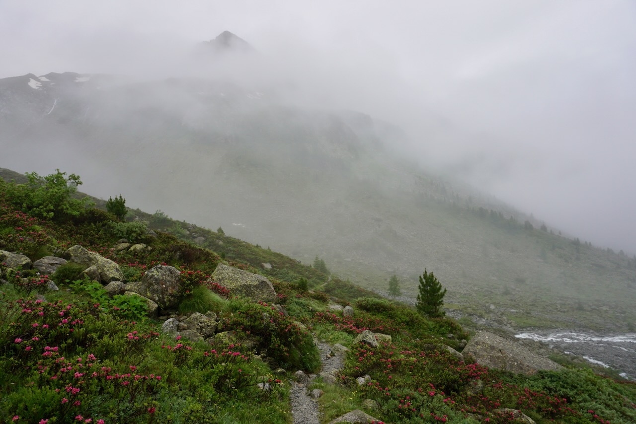 The route is beloved for day hikes as well as being part of the Berliner Höhenweg, and I can understand why. The bright flowers and the reservoir in bright blue with the mountains all around are rather photogenic.