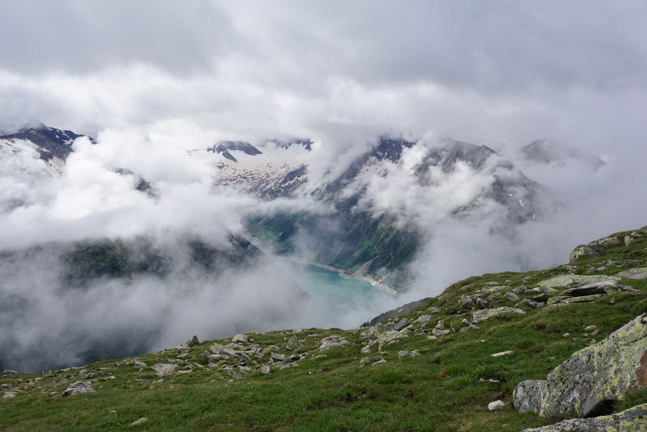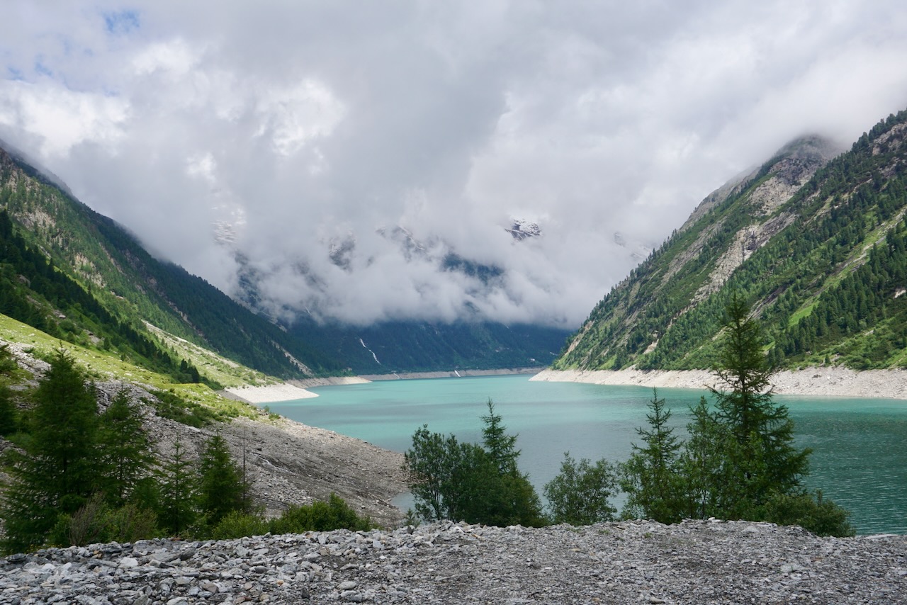 In comparison to the previous day, our path to the Olpererhütte was far less physically demanding. At over 10.5 kilometers, this was our longest day yet, but with only a 510 meter descent and 610 meter ascent. The five flat kilometers in the middle of the route followed the Schlegeis Reservoir, and we were looking forward to a little break.