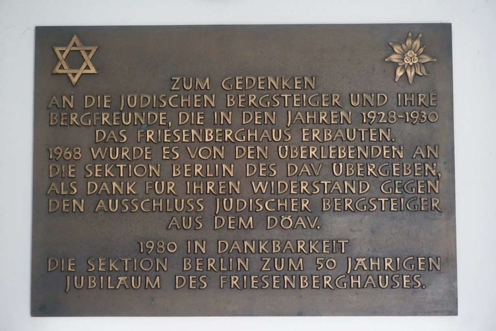 We stopped for a bowl of soup to get out of the rain that had picked up. It was interesting to note the bit of history on the wall, thanking the members of the Berlin section of the alpine club for their resistance against the exclusion of Jewish members from the German and Austrian alpine clubs. There is little place for exclusion in the mountains.
