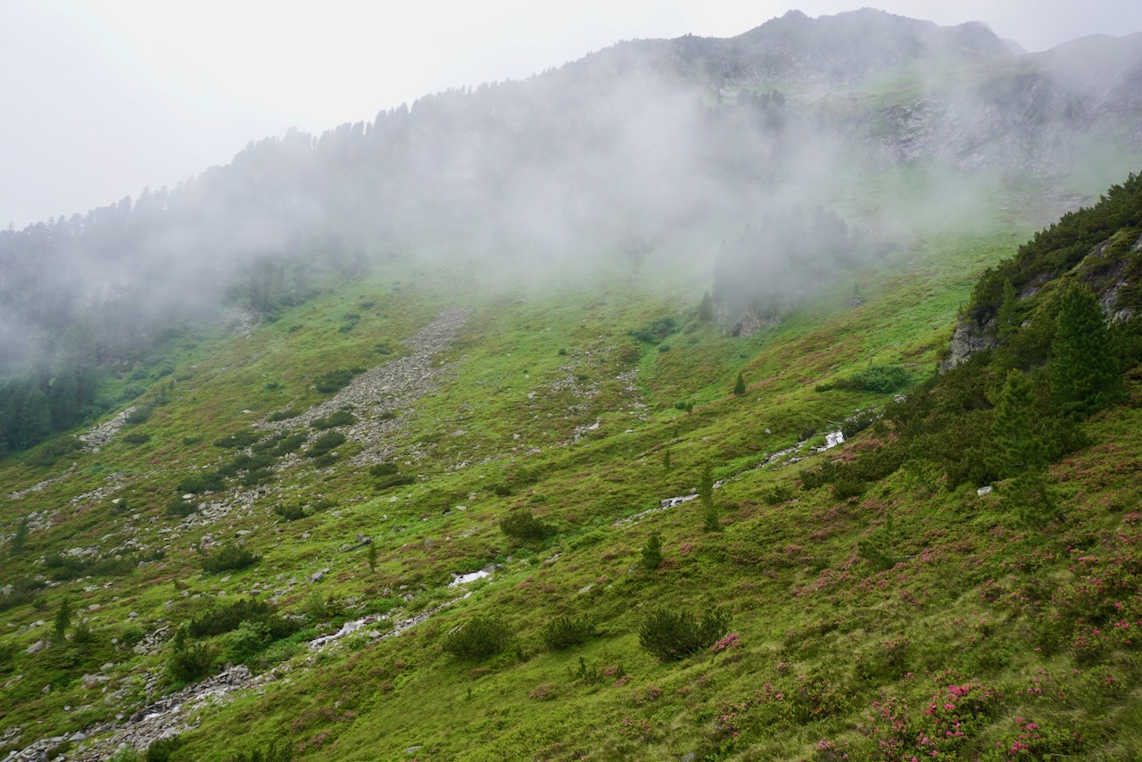 We woke to rain that came in waves over the course of the day, during which we would ascend 1,060 meters, descend 810 meters, and cover close to 9 kilometers.