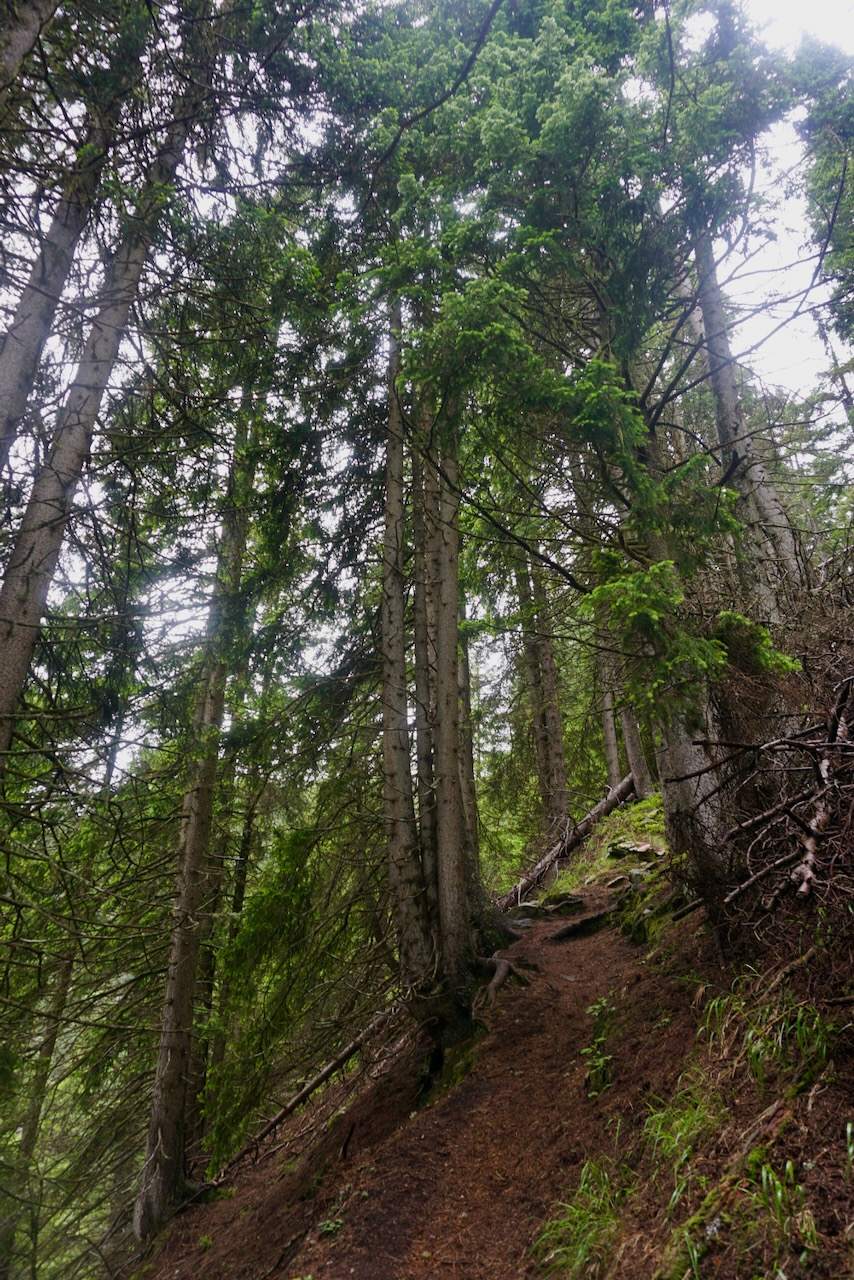 The final descent was long and we knew we were nearly there when our way headed directly through the trees. The mountains were above us again and we were too far from where we’d started to see where we’d been. Our trekking poles showed good signs of wear by now.