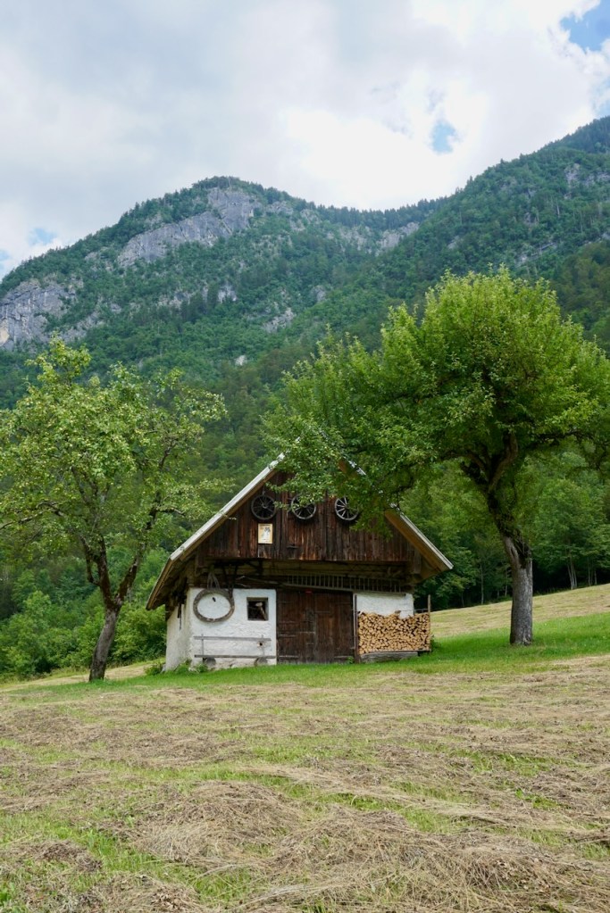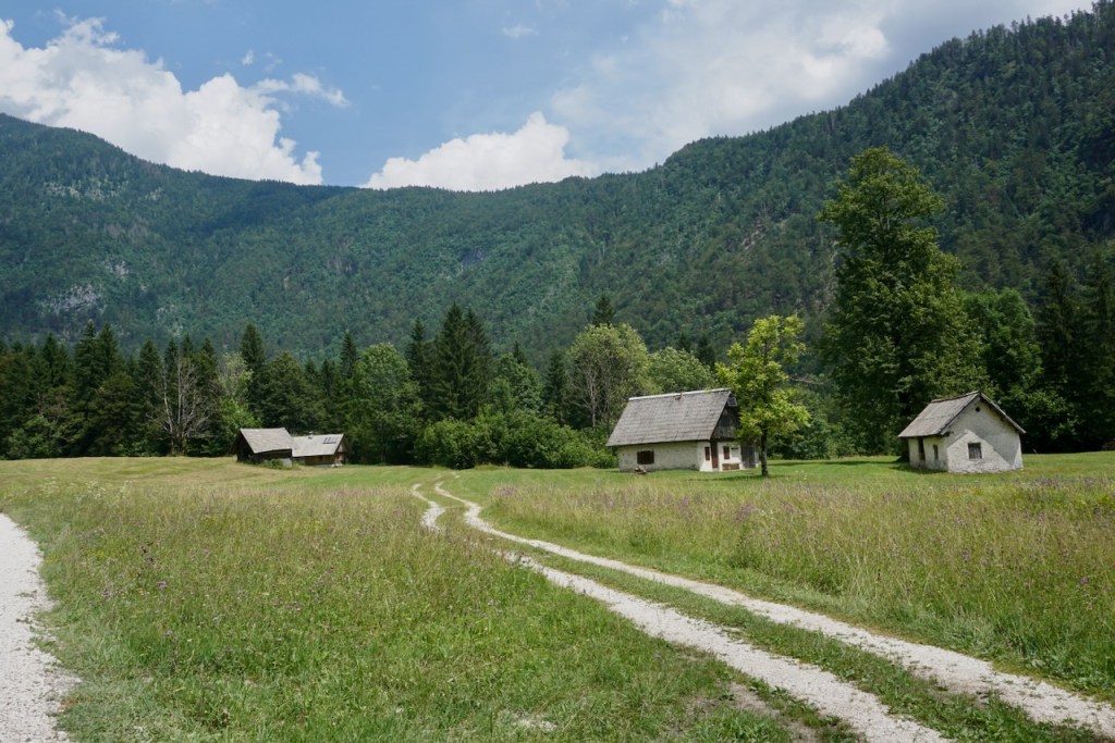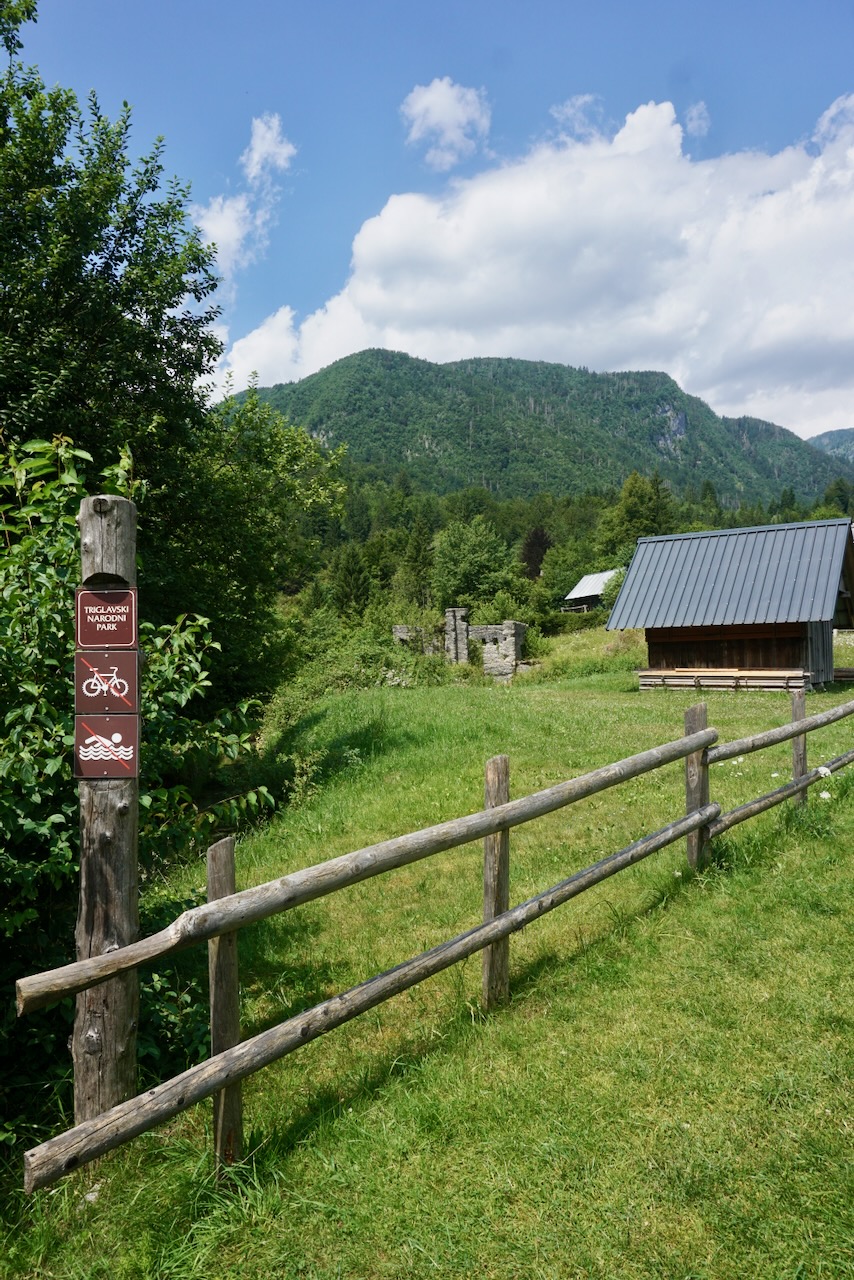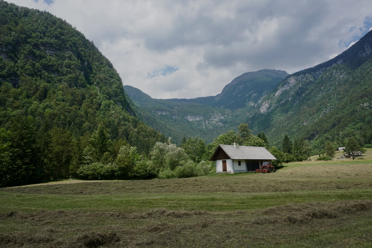 Our time in Slovenia was mostly spent enjoying Triglav National Park. On our first full day, we hiked past the fields at the edge of the village . . .