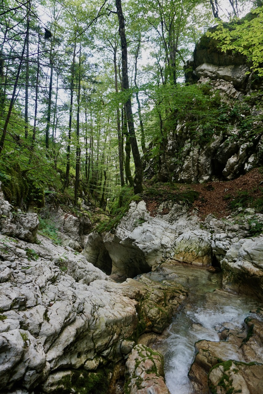 . . . through Mostnica Gorge with its deep caverns of bitingly cold water that provided relief for our feet . . .