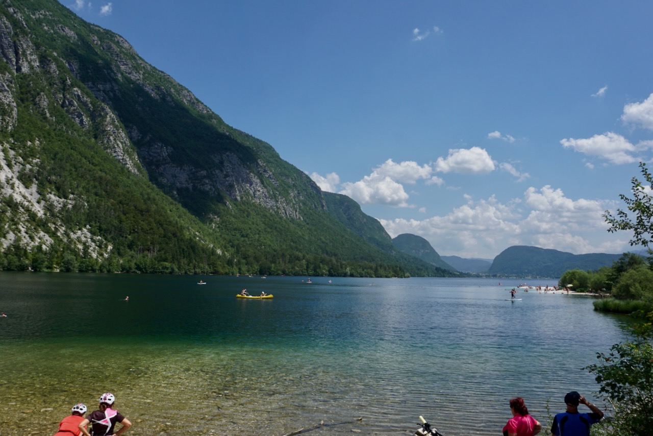 We spent our last day in Slovenia having a beach day at Lake Bohinj. We spread our towels on the grass under a tree, bought ice cream bars from a kiosk, went swimming, and paddled our rented boards. It had been very hot the last several days and the water was delicious.
