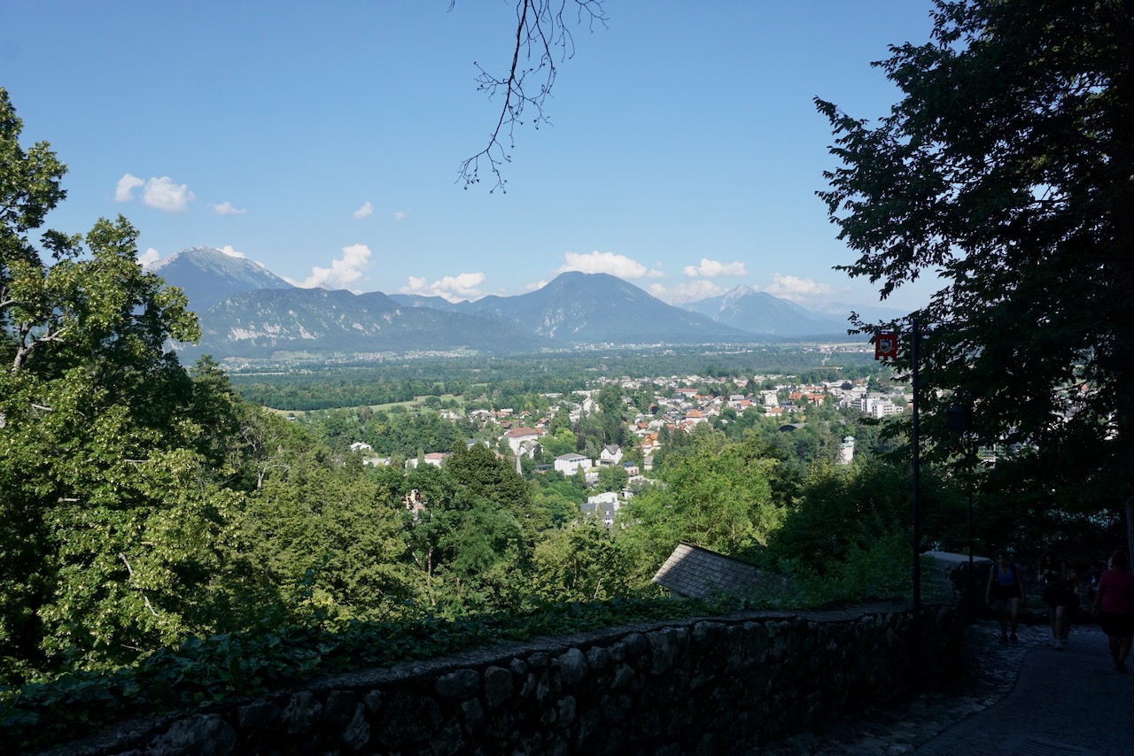 We walked up the path to Castle Bled, stopping just before we had to pay admission to look down at the valley through which we had driven on our way there.