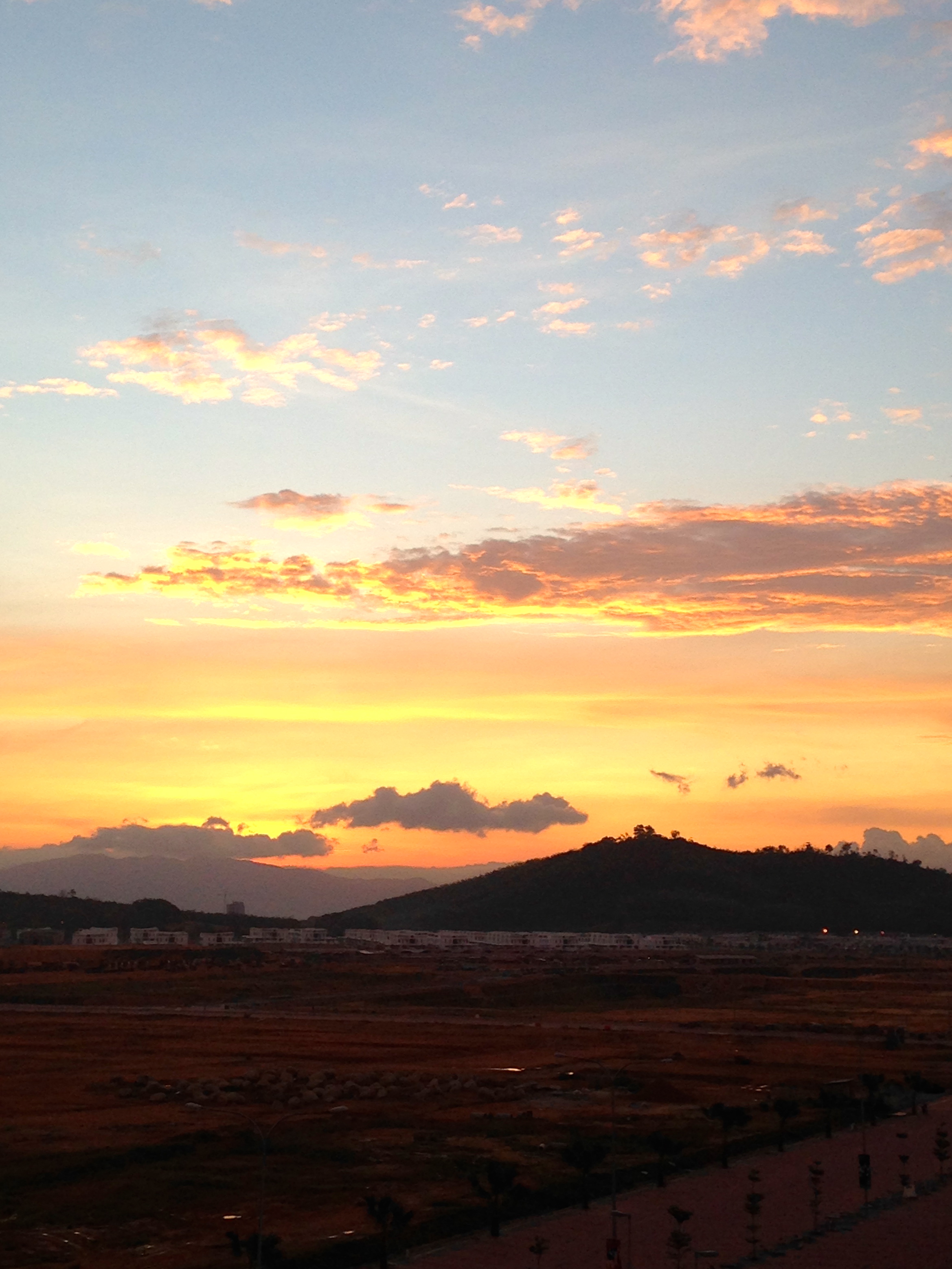 It rained a lot this weekend, and not just in the afternoon! We had rain during the day and thunderstorms at night, too. This is the hot season and I’m told that the 4pm rain is still normal, but it seems that we’ve had quite a lot other than that. Anyway, we were rewarded for our patience with the weather by a beautiful sunset . . .