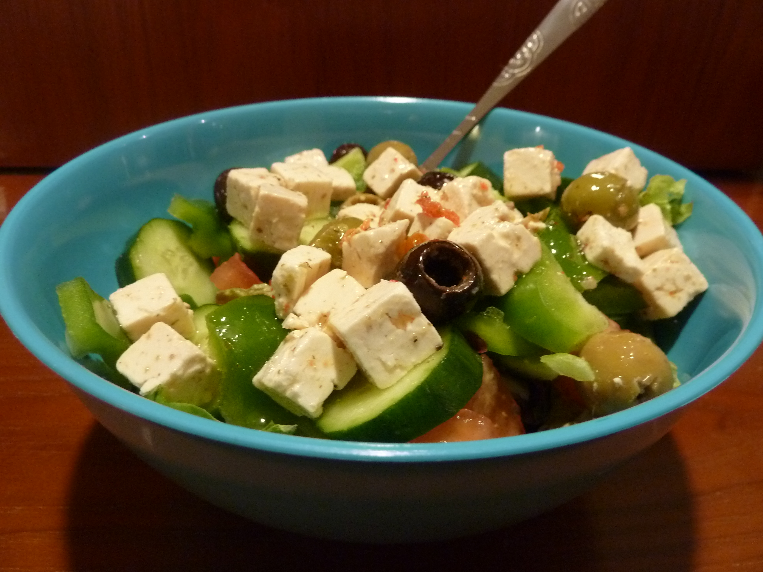 - Feta cheese and black and green olives in olive oil (product of Germany)