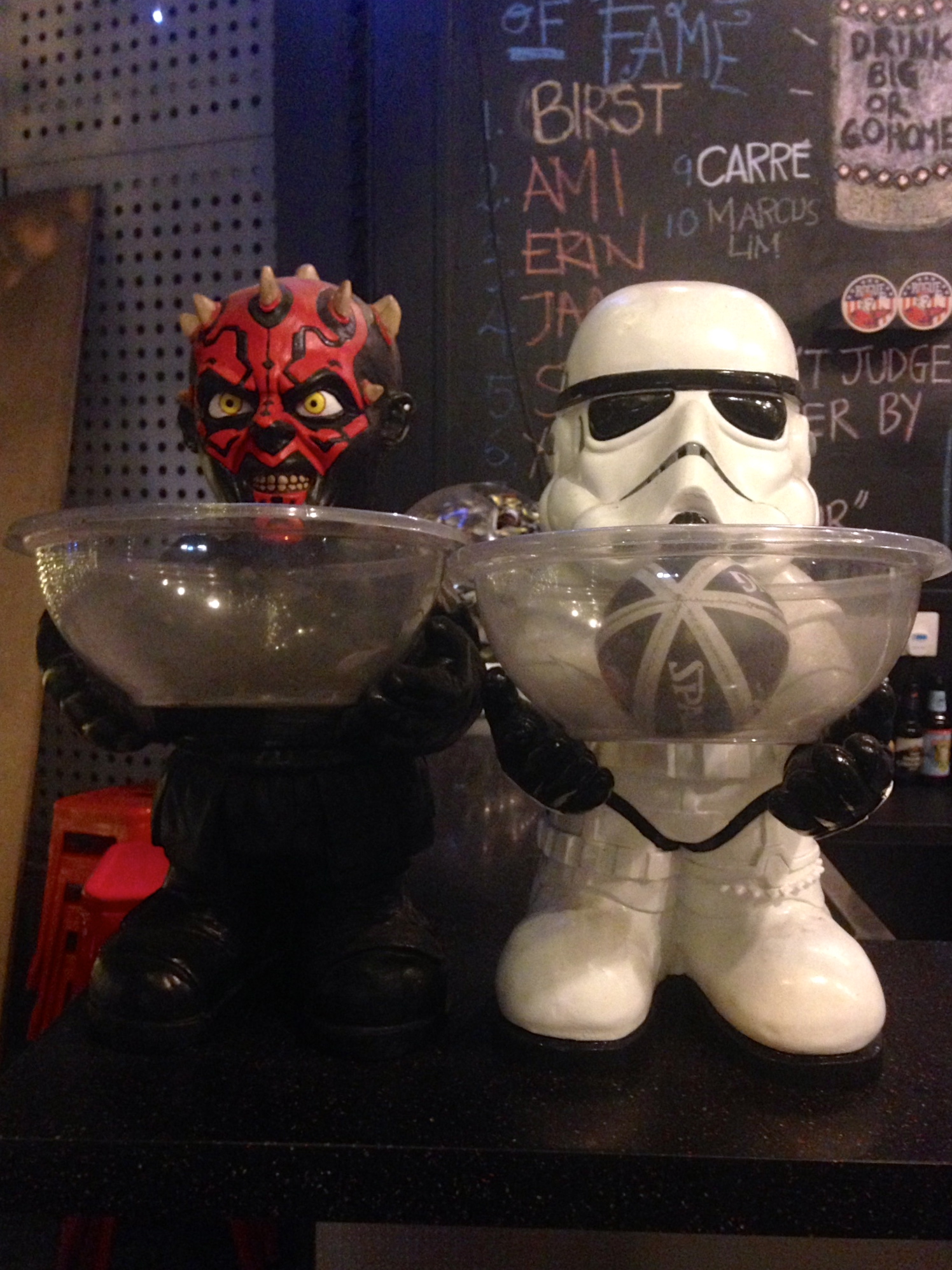 My Saturday night plans fell through so I decided to check out a real beer bar. Yelp suggested HopHeads and I’m glad it did! While pricey, HopHeads serves real beer. I had an Deschutes IPA on draft and a Rouge ale, also on draft. Though they only have two rotating taps, the bottle selection was impressive for Singapore. There were selections from a variety of brewers that I enjoy back in the US, like Rouge, Deschutes, Hitachio, and even Delirium! The only food I ordered were French fries, which were way too salty to be enjoyable. Although this didn’t stop me from eating them, I don’t think I’d order food in the future. Those fries were seriously salty. The beer, however, is enough reason to return!