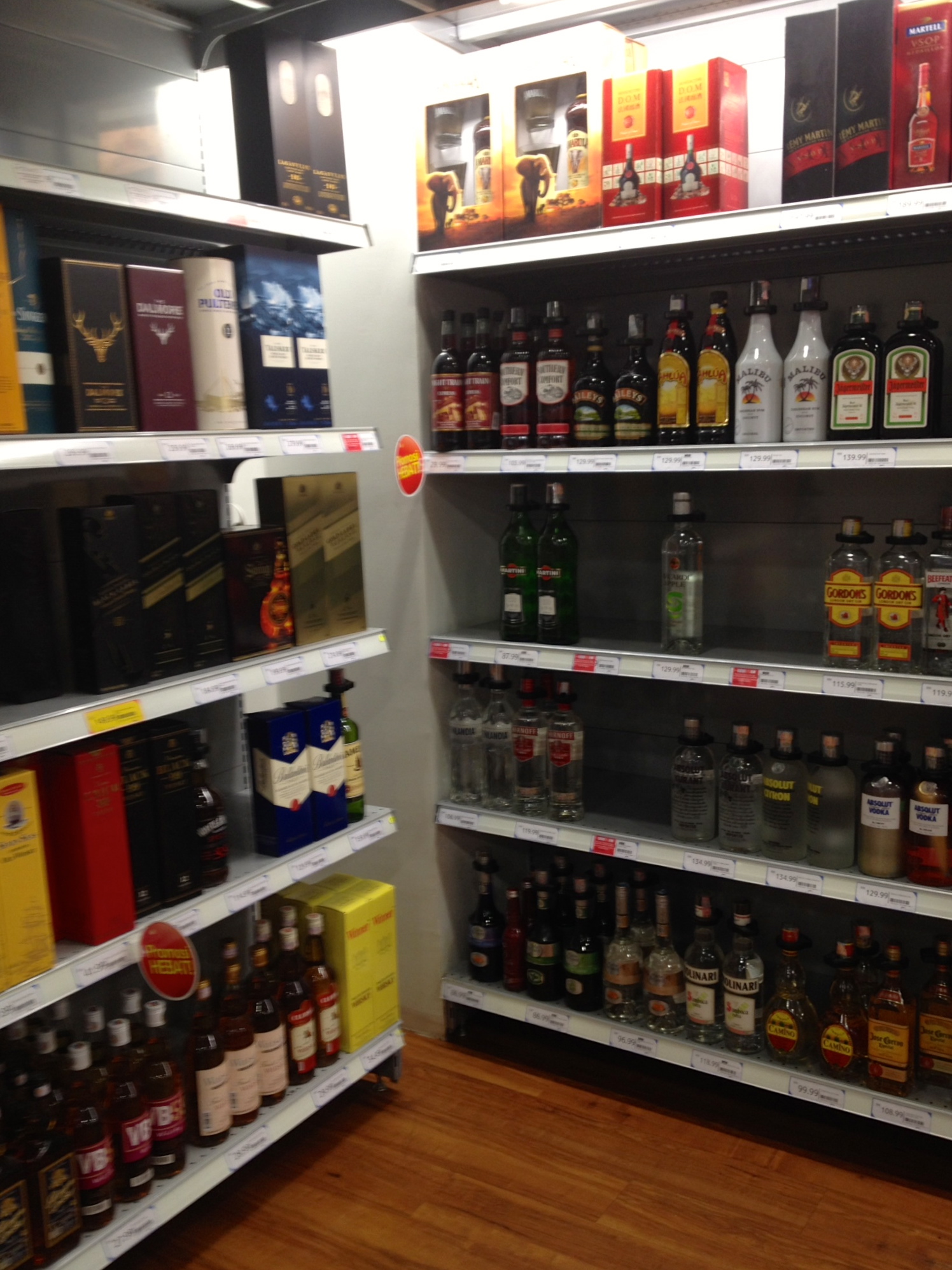 The liquor selection was decent. Not bad, not good, but decent. They had something of just about everything one would need to stock a respectable bar. The shelves on the left had a respectable whiskey selection, too. Mitch is also a whiskey snob, a sentiment he shares with my dad, and he classified the whiskey selection as the best of all the liquor, but nothing impressive. Whiskey aside, they had Jose and Beefeater and we’ve seen Bombay Sapphire elsewhere (in little bottles with big price tags) so I’m satisfied with that. Again, prices were at least twice what we’d pay at home.