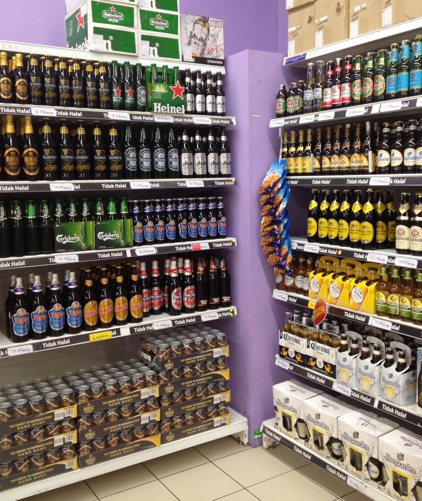 Notice the “Tidak Halal” signs on the shelves – “Not Halal.” (That’s like putting a “Not Kosher” sign on shrimp or bacon. Anyone who cares already knows.)