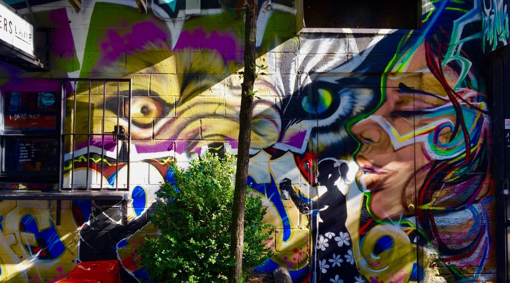 However, I’m bad at sitting at the best of times and caffeine doesn’t help. So I’ve also been wandering around the East Village and taking pictures of everything colorful in an effort to improve my mood and general outlook. That’s a thing, right? Color therapy? I’m not sure if it’s working but I did find some delightful street art: