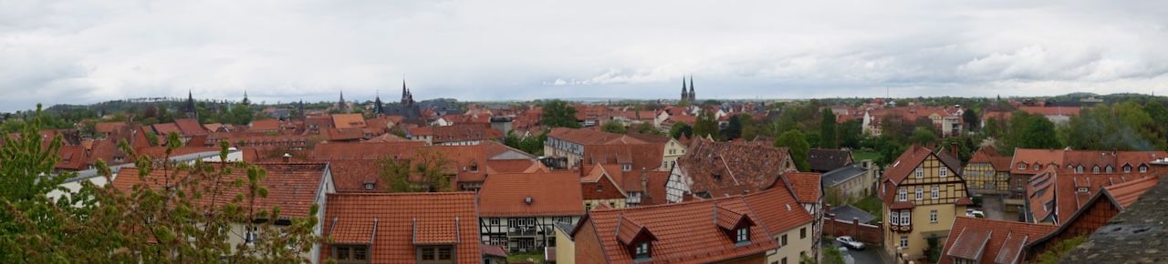 In keeping with our mutual enjoyment of adventure, the three of us headed off Saturday morning for a night in Quedlinburg in the neighbouring state of Sachsen-Anhalt. The town is located in the Harz, which I’d heard about but never seen, and was an incredibly important medieval trading hub. It is also charmingly known for gatherings of witches. There are signs of former wealth all over town today, as evidenced by the castle, cathedral, and multiple churches.