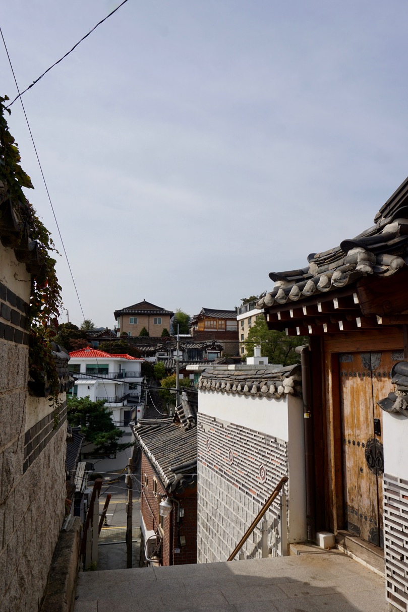 After our first visit to the palace, still deep in discussion about wearing the hanbok, we walked over to Bukchon Hanok Village, a collection of hilly streets with traditional houses. There were a few restored homes open to visitors as well as a handicrafts centre offering short sessions on different types of crafts.