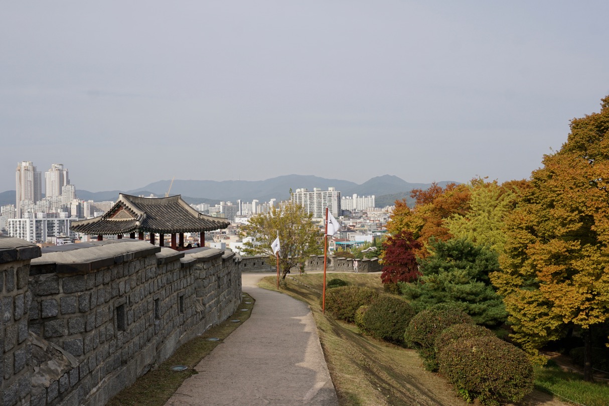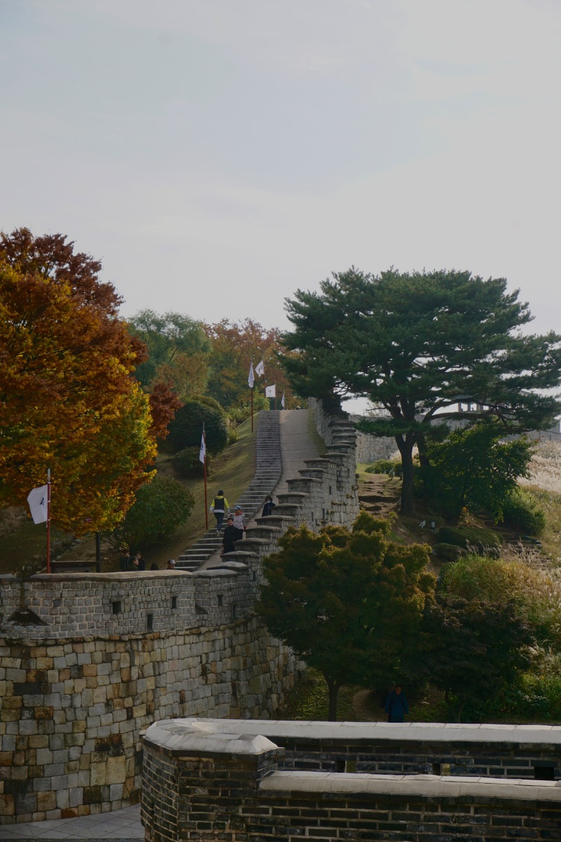 After a day in the city it was time to get out of Seoul again and take the train 30km south to Suwon. Seoul’s metro system is so sprawling that one train took us all the way there. Suwon is Korea’s last completely walled city and the primary reason to visit is to walk the 5.4km wall of the fortress. It was lovely to spend yet another day outside in cold wind and bright blue sky.