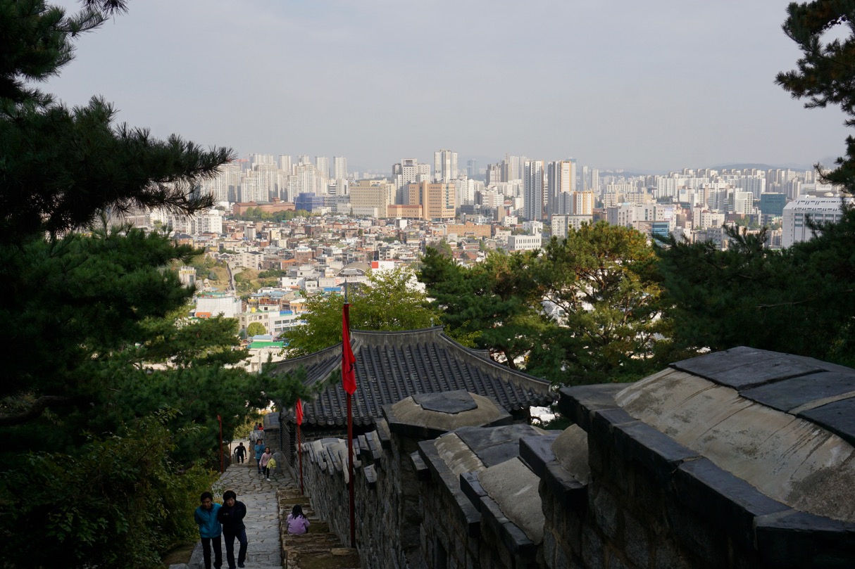 It was really neat to watch the skyline unfold as we climbed higher, too. Korea is a hilly country and the fortress rolled along with the land.