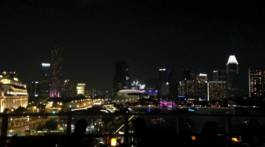 Lantern is beautifully set on a hotel rooftop at Marina Bay, so we wined and dined overlooking the skyscrapers of Singapore’s business district, as well as some very fancy hotels. Marina Bay Sands, the casino, is in the distance. Our ferris wheel, the Singapore Flyer, was close by, too!