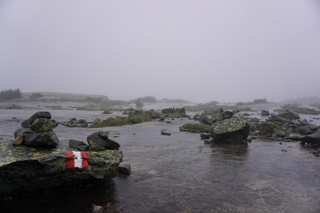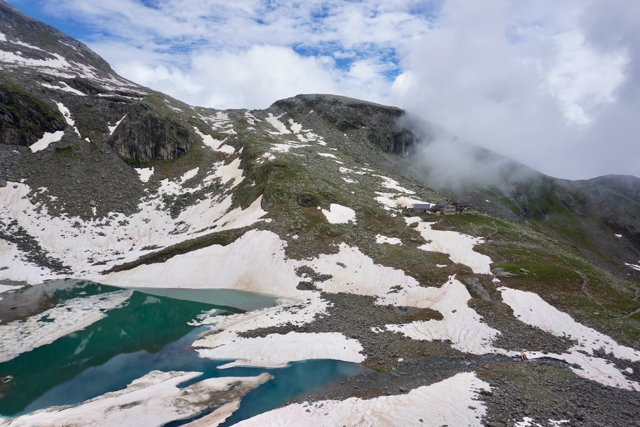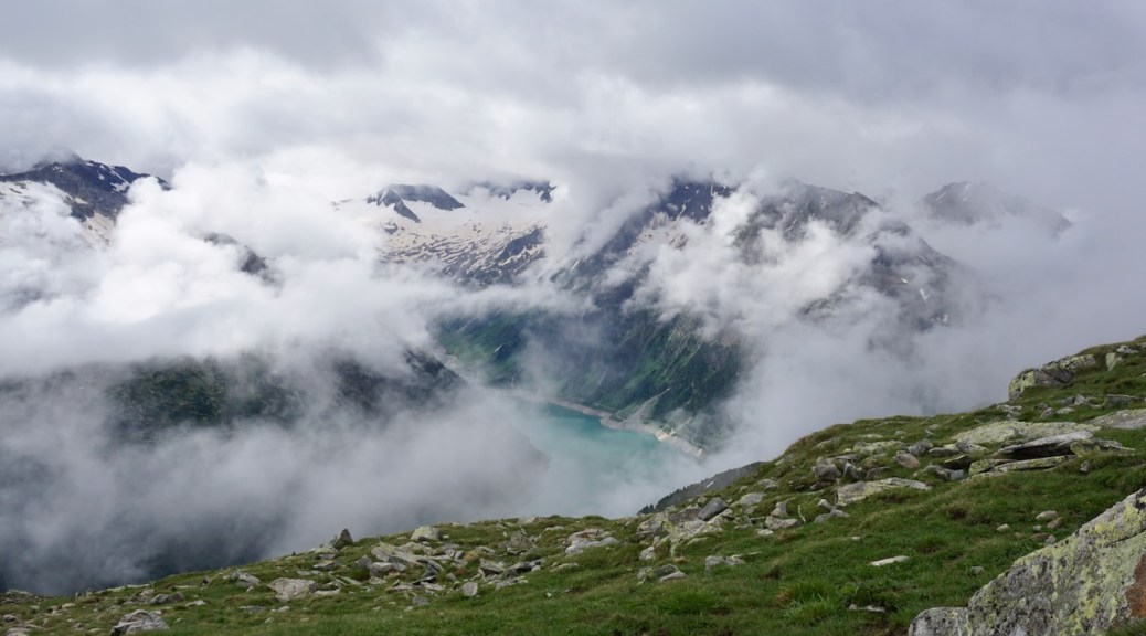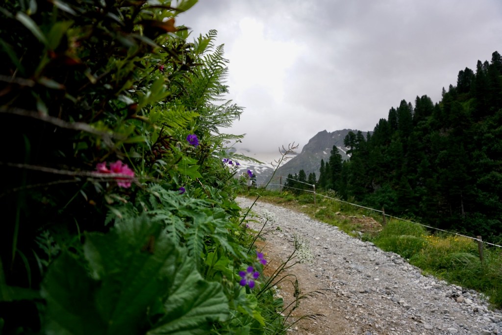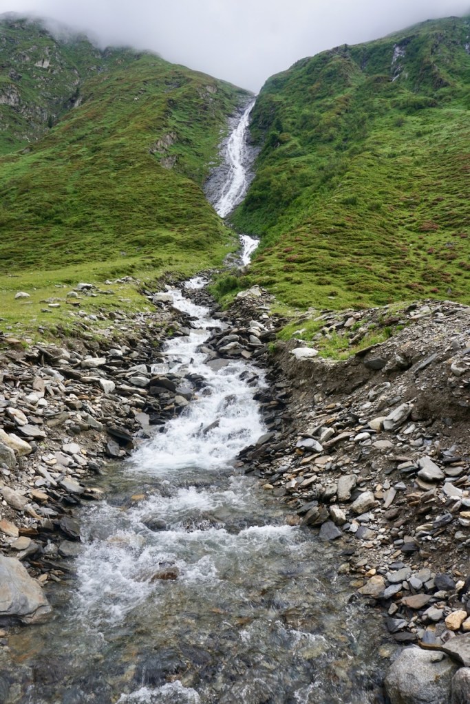 We left the Martin-Busch-Hütte in the rain, which is no problem when you’re prepared for it. The landscape was dreamy as we descended, kissed by clouds.