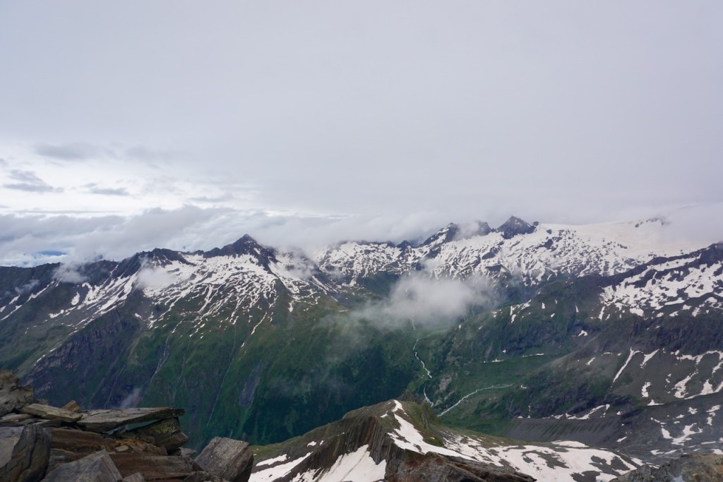 As the clouds rolled in, we reached the end of the glacier and the rock scramble along the mountain ridge began. This is the part I enjoyed because this is where I could feel my body again – I am a climber, after all. We reached summit and looked down into Austria on one side and Italy on the other.