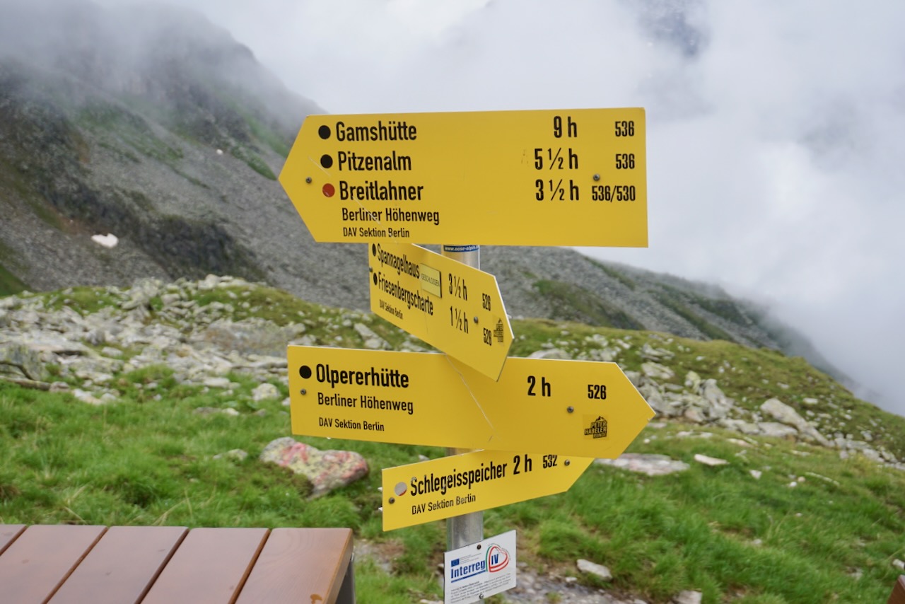 After a few hours, eight kilometers, and 600 meters of elevation, we reached the end of civilization and the beginning of our adventure. We would spend two nights at the Martin-Busch-Hütte, allowing us the luxury of leaving many of our belongings behind for our summit tour the following day. As the sign said, we were in the last spot for cell service.