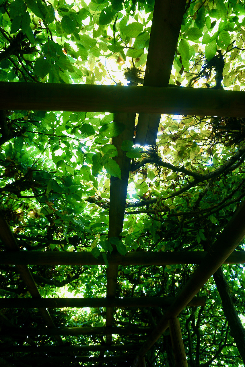 . . . and I love the moments where the sun shines through and leaves patterned shadows. My very old phone doesn’t take the smoothest panoramas, but the clouds really were storybook clouds and the grass really was turning green again.