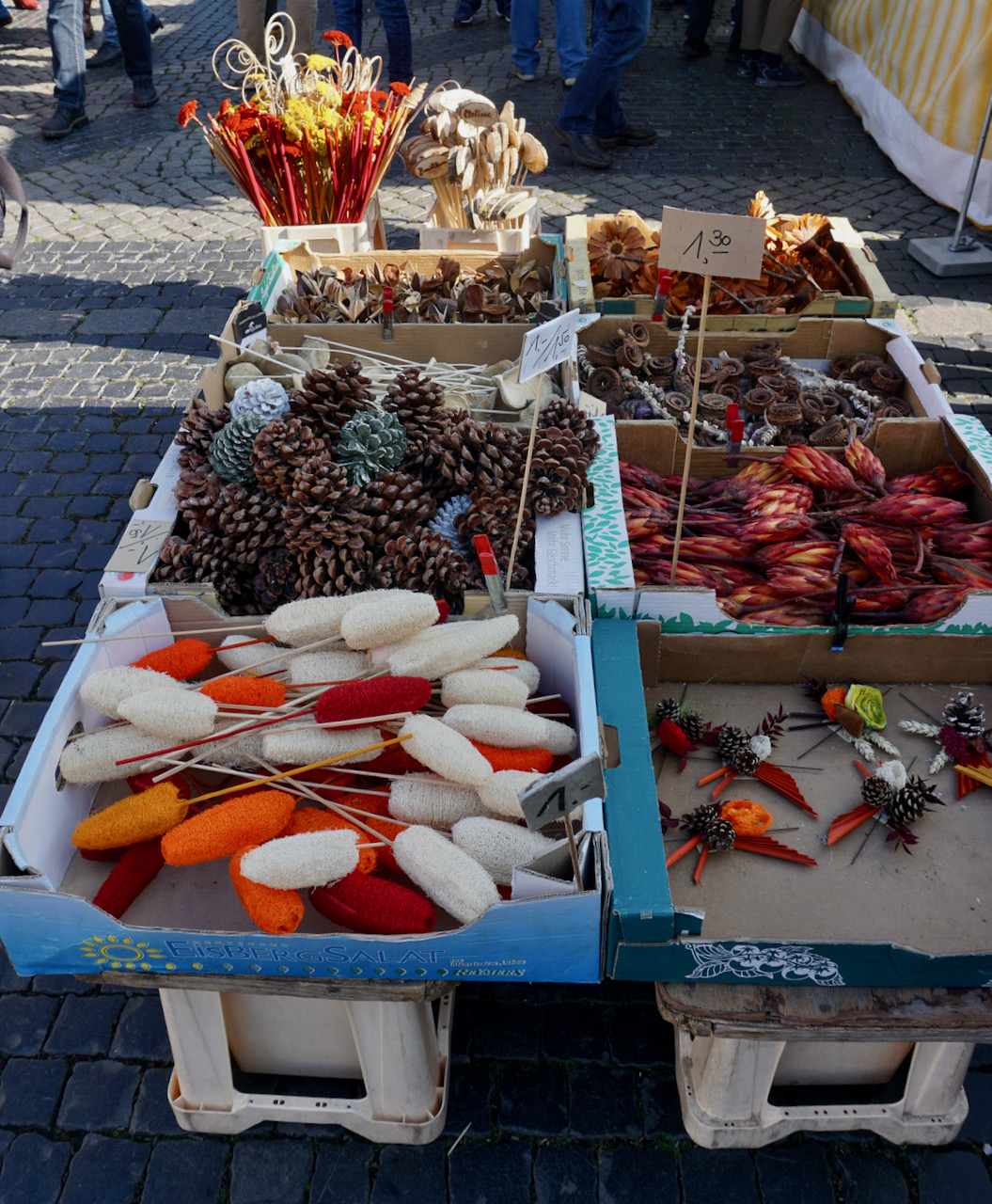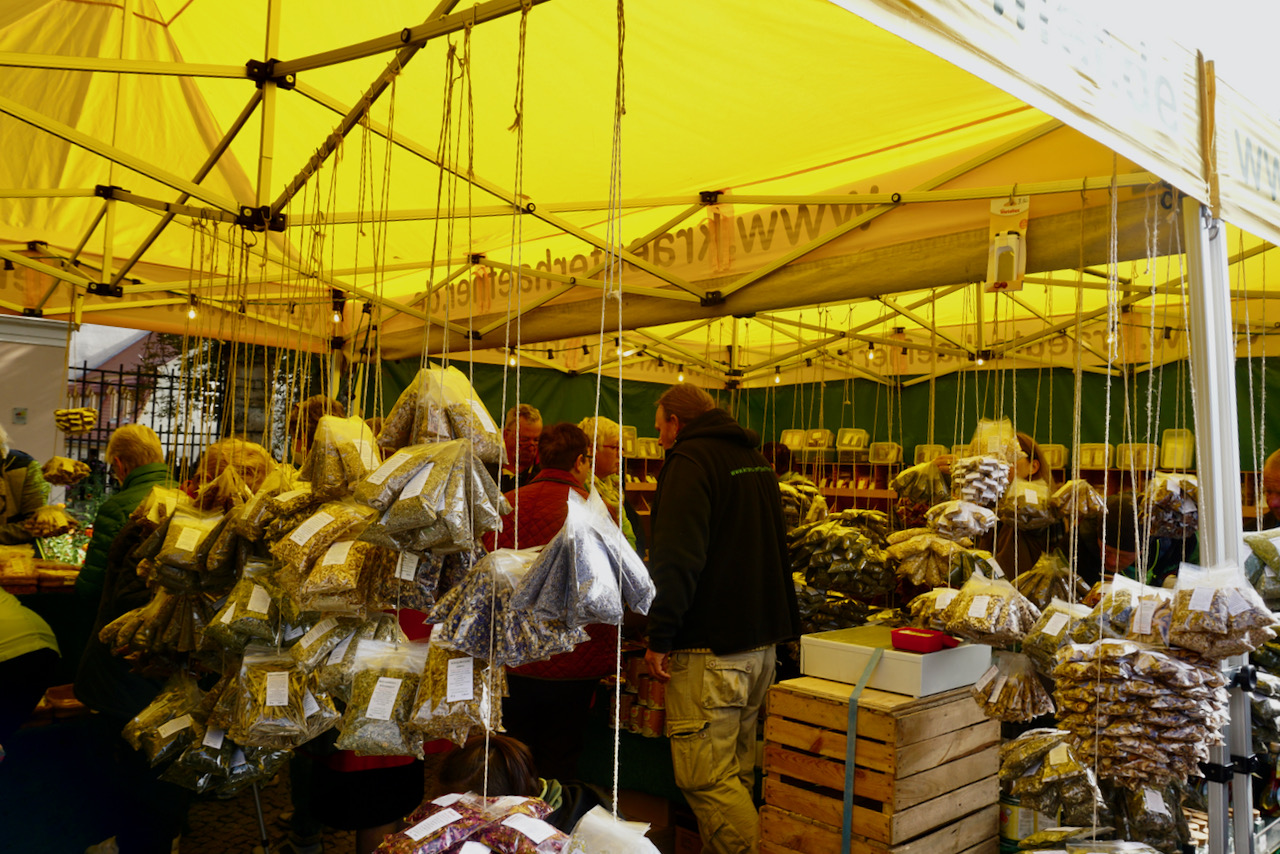 . . . and past fields of tiny spring flowers. The little yellow ones are Winterlinge, visible for just a few weeks as winter fades into spring, the white ones are called Märzenbecher, which roughly translates to “March goblets”, and the purple ones are, of course, crocuses.